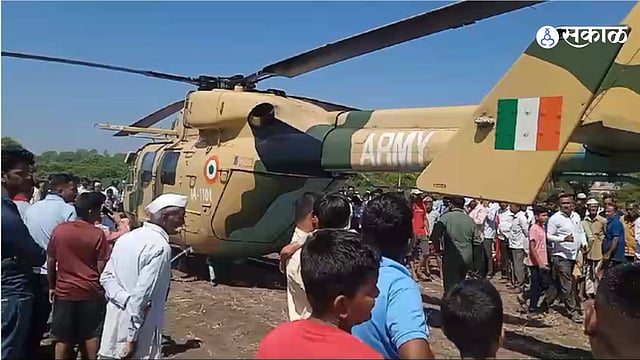 Sangli Helicopter Emergency Landing : खंडेराजुरी ता. नाशिकहून बेळगावला जाणाऱ्या भारतीय सैन्य दलाच्या हेलिकॉप्टरमध्ये तांत्रिक बिघाड झाल्याने एरंडोली (ता. मिरज) येथे इमर्जन्सी लँडिंग करण्यात आले. हेलिकॉप्टर पाहण्यासाठी परिसरातील नागरिकांनी मोठी गर्दी केली होती.