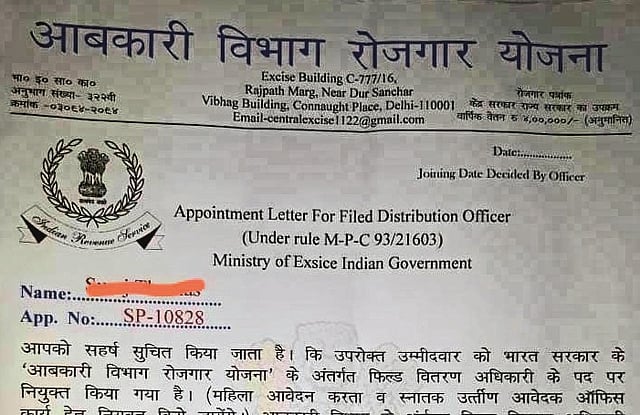 या युवकांना आलेल्या पत्रात त्यांना सरकारकडून केंद्रीय अबकारी विभागात फील्ड अधिकारी म्हणून नियुक्त करण्यात आल्याचे म्हटले आहे. त्यापोटी त्यांना वीस हजार मासिक वेतन तसेच पेट्रोल, वाहन खर्च, प्रॉव्हिडंड फंड, दुपारचे जेवण, घरभाडे, अपघात विमा असेही लाभ देण्यात येणार असल्याचेही पत्रात म्हटले आहे. त्यांना लवकरच दारूच्या दुकानावर नियुक्ती देण्यात येणार आहे. जी.एस.टी. कार्यालयातील अधिकाऱ्यांनी या पत्राची पडताळणी केली असता तपशीलांवरुन ही कागदपत्रे बनावट आहेत असे दिसून आले. तसेच त्यांना रजिस्ट्रेशन फी म्हणून 2200 रुपये भरण्यास सांगण्यात आले आहे. तसेच पंधरा हजार रुपये ठेवींसाठी देण्यास सांगितल्याचे या युवकांनी अधिकाऱ्यांना सांगितले.