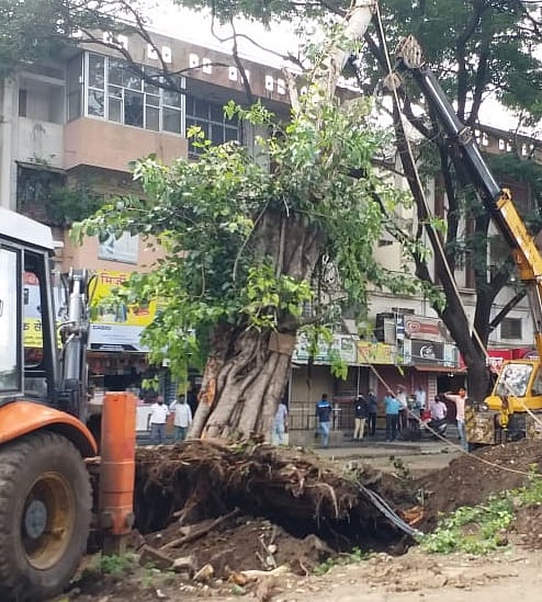 त्यांनी महापालिकेच्या अधिकाऱ्यांना पृनर्रोपणासाठी आवश्यक तो खर्च द्यावा असे आदेश दिले. गेले महिनाभर प्रशासकीय प्रक्रिया झाल्यानंतर आज सर्व कार्यकर्ते आणि महापालिका कर्मचाऱ्यांनी क्रेन्सच्या सहाय्याने झाड सुमारे एक मीटर खोलवर खुदाई करून झाड काही मुळांसह बाहेर काढले. आधीच खुले नाट्यगृह परिसरात खड्डा खोदला होता. त्यामध्ये खते, पोषक द्रव्ये टाकून त्याचे पुर्नरोपन झाले. सध्याच्या पावसाळी हवेत हे झाड नक्की जगेल अशी खात्री सोसायटीचे डॉ.हर्षद दिवेकर यांनी व्यक्त केली.