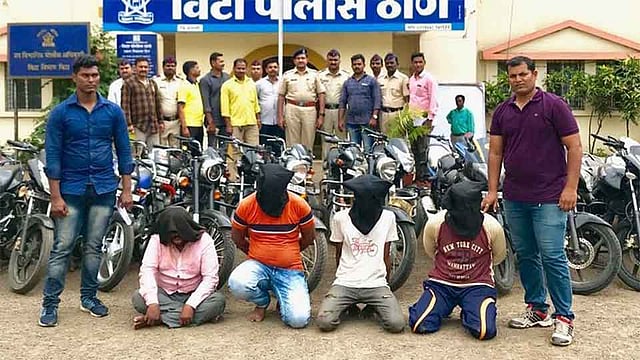 विटा - सांगली, सातारा, पुणे, सोलापूर जिल्ह्यातून दुचाकी गाड्या चोरून त्यांची विक्री करणाऱ्या चारजणांच्या टोळीला विटा पोलिसांनी पकडले. सचिन मधुकर भोरे ( वय ३२, रा. उडगी, ता. अक्कलकोट, जि. सोलापूर ), नामदेव बबन चुनाडे ( वय ४६), औदुंबर रमेश उगाडे ( वय २७), गणेश महादेव साळुंखे ( वय ३०, सर्व रा. अनिलनगर झोपडपट्टी, पंढरपूर ) अशी त्यांची नांवे आहेत. त्यांच्याकडून १५ लाख ८० हजार रूपये किंमतीच्या ३१ दुचाकी हस्तगत करून चौघांनाही अटक केल्याची माहिती पोलिस निरीक्षक रवींद्र शेळके यांनी दिली.