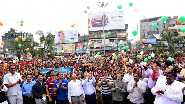 "सकाळ' व जिल्हा प्रशासनाने आवाहन केल्यानंतर लोकशाहीच्या या उत्सवात समाजातील सर्वच घटकांनी उत्स्फूर्त सहभाग नोंदविला. हातात हात गुंफत मानवी साखळी करताना वाहतुकीस कोणताही अडथळा होणार नाही, याची खबरदारीही घेण्यात आली. आगामी विधानसभा निवडणुकीत सर्वाधिक मतदानाचा आदर्श देण्याचा संकल्प यावेळी झाला.