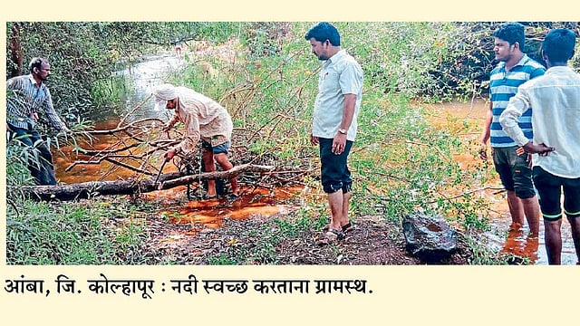 आंबा, जि. कोल्हापूर - कडवी नदी स्वच्छता मोहिमेच्या दुसऱ्या टप्प्यात चांदोली ग्रामस्थांनी लोकसहभाग आणि श्रमदानातून अर्ध्या किलोमीटरची नदीची स्वच्छता केली.