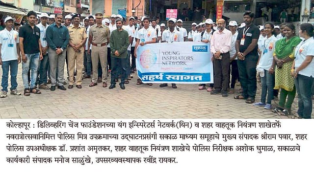 नवरात्रोत्सवात कोल्हापूर शहरात लाखो भाविक अंबाबाईच्या दर्शनासाठी येतात. बिंदू चौक, मिरजकर तिकटी, बिनखांबी गणेश मंदिर, पापाची तिकटी, छत्रपती शिवाजी चौक, महाद्वार रोड नऊ दिवस गर्दीने गजबजून जातो. पोलिसांना गर्दीवर नियंत्रण ठेवण्यासाठी धावपळ करावी लागते. आपणच पोलिसांना मदत केली तर असा विचार यिनच्या सदस्यांनी केला आणि त्यानुसार आजपासून पोलिस मित्र उपक्रमास सुरवात झाली. शहर पोलिस उपअधीक्षक प्रशांत अमृतकर व सकाळ माध्यम समूहाचे मुख्य संपादक श्रीराम पवार यांच्या प्रमुख उपस्थितीत उपक्रमाचे उद्घाटन झाले.