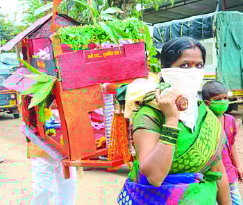 सकाळपासूनच घरांघरांत गणेश आगमनाची धांदल सुरू झाली. दारात सडा टाकून रांगोळी सजली आणि त्याचवेळी "गणराज माझा नाचत आला', "बाप्पा तुम्ही या..' अशा गीतांनी सारा माहौल भक्तीमय झाला. मोजक्याच लोकांनी मुर्ती आणायची असल्याने अनेकांनी घरातील केवळ दोन ते तीन सदस्यांना घेवूनच मुर्ती आणली. घरी मुर्तीची विधीवत प्रतिष्ठापना झाल्यानंतर आरती आणि त्यानंतर मोदक व खिरीचा आनंद घेत मंडळांच्या बाप्पांना आणण्यासाठीची धांदल पुन्हा सुरू झाली.