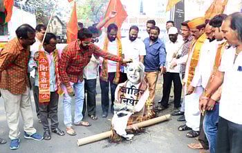 कोल्हापूर : मुख्यमंत्री उद्धव ठाकरे यांचा अवमान यापुढे सहन करणार नाहीच शिवाय त्यांच्यासंबंधी यापुढे अपशब्द वापरल्यास कर्नाटकातील एकाही मंत्र्यांला महाराष्ट्रात फिरू देणार नाही. असा इशारा शिवसेनेचे जिल्हाप्रमूख विजय देवणे यांनी आज दिला. कर्नाटकचे मुख्यमंत्री येडीयुराप्पा यांच्या निषेधाच्या घोषणा देत शिवसेनेने आज त्यांच्या पुतळ्याचे दहन केले. मिरजकर तिकटी येथे दुपारी साडेबाराच्या सुमारास आंदोलन झाले.