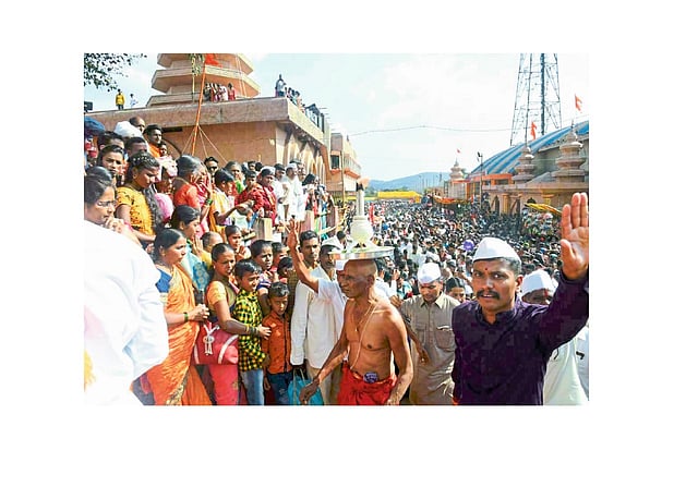 दुपारी एक वाजल्यापासून मंदिरात विविध धार्मिक विधींना सुरवात झाली. दोनच्या सुमारास येथील प्रथमवर्ग न्यायदंडाधिकाऱ्यांसह मानकऱ्यांनी मंदिरात हजेरी लावली. त्यानंतर आरती उचलण्यात आली. पालखीच्या पुढे डोकीवर आरती घेतलेले विलास गुरव, पारंपारिक पी-ढबाकचे वाद्य, मंदिर समितीचे सचिव मधुकर देसाई यांच्यासह शस्त्रधारी मानकरी आणि सासनकाठी मिरवत प्रदक्षिणा घालण्यात आल्या.