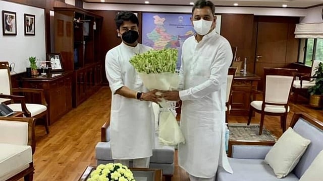 कोल्हापूर : कोल्हापूर विमानतळाचे (Kolhapur Airport) 'छत्रपती राजाराम महाराज (Chhatrapati Rajaram Maharaj Airport) विमानतळ' असे नामकरण करावे, अशी मागणी खासदार युवराज संभाजीराजे छत्रपती (Yuvraj Sambhaji Raje Chhatrapati) यांनी नूतन केंद्रीय नागरी हवाई वाहतूक मंत्री ज्योतिरादित्य शिंदे यांच्याकडे केली. (Chhatrapati-Rajaram-Maharaj-Airport-naming-Demand-for-SambhajiRaje-Chhatrapati-Jyotiraditya-Shinde-akb84)