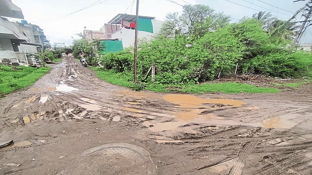 ड्रेनेज कामाचे पॅचवर्क झालेले नाही. त्यामुळे संपूर्ण रस्ता चिखलाचा झाला आहे. मेन रोडवरून कॉलनीत जाणे मुश्कील होत आहे. चालत येणेही कठीण होत आहे.