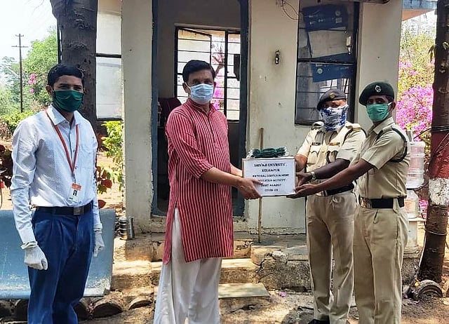 विद्यापीठामध्ये सुरक्षा, उद्यान, आरोग्य तसेच पाणीपुरवठा आदी अत्यावश्यक सेवांवर कर्मचारी कार्यरत आहेत. त्याचप्रमाणे अत्यावश्यक कार्यालयीन कामकाजाच्या निकडीनुसार आस्थापनासह अन्य काही विभागांतील कर्मचारीही कामकाजावर उपस्थित राहात असतात. त्याचप्रमाणे विद्यापीठाच्या विविध निवासस्थानांमध्ये अनेक शिक्षक, प्रशासकीय सेवक आणि त्यांचे कुटुंबिय राहतात. कोरोना विषाणू साथीच्या पार्श्वभूमीवर सर्व घटकांच्या आरोग्य सुरक्षेच्या दृष्टीने विद्यापीठाच्या राष्ट्रीय सेवा योजना (एनएसएस) कक्षाच्या वतीने या सर्व घटकांना सॅनिटायझर व मास्क यांच्या कीटचे वाटप करण्यात आले.