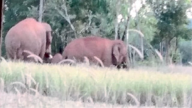 चंदगड (कोल्हापूर) : हेरे (ता. चंदगड) येथील संजय पेडणेकर यांच्या भिंगहोळ शेतातील घरासमोर बांधलेल्या गायीवर हत्तीने हल्ला करण्याचा प्रयत्न केला. प्रसंगावधान राखून पेडणेकर यांनी ध्वनिवर्धक सुरू केल्याने हत्ती बिथरून माघारी परतले. आज सायंकाळी साडेपाचच्या सुमारास हा प्रकार घडला.