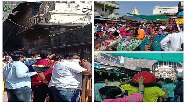 करवीर निवासनी श्री आंबाबई देवीच्या दर्शनसाठी नियमीत तीन हजार भाविकांना दर्शन दिले जात आहे. मात्र जोतिबाच्या डोंगरावर आज सुमारे पन्नास हजार भाविकांनी डोंगरावर गर्दी करत सोशल डिस्टन्सचा फज्जा उडवला आहे.