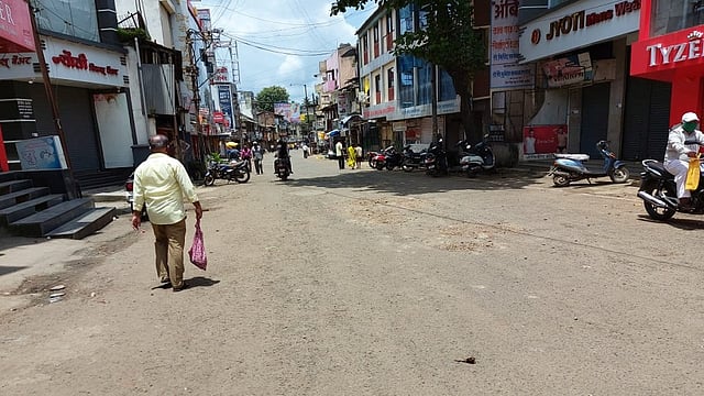 कोल्हापूर : ढोल-ताशा पथकांचा घुमणारा दणदणाट यंदा नाही. पारंपरिक वेषात बाप्पाला निरोप देण्यासाठी आलेल्या भक्तांची अलोट गर्दी नाही. मंडळांचे प्रबोधन करणारे चित्ररथ नाहीत. बंद दुकाने, चिंतातूर चेहऱ्यांनी वावरणारी तुरळक माणसे अशा विचित्र वातावरणातील सकाळ आज महाद्वार रस्त्याने ऐन अनंतचतुर्दशीला अनुभली.