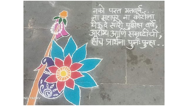 रविवारच्या जनता कर्फ्यूनंतर सोमवारी मध्यरात्रीपासून राज्यात तर काल मध्यरात्रीपासून देशात संचारबंदी लागू झाली. त्यामुळे काल रात्रीपासूनच नागरिकांची तारांबळ उडाली. मात्र आज पहाटेपासूनच घरोघरी गुढी उभारण्याची तयारी सुरू झाली. उगवत्या सूर्याच्या साक्षीने घरोघरी गुढ्या उभारल्या गेल्या. यानिमित्ताने दारात रांगोळ्या सजल्या. 'नको पुन्हा गत वर्ष ना महापूर ना कोरोना. नवीन वर्ष घेऊन येऊ दे आरोग्य आणि समृद्धी' अशी प्रार्थनाही त्यातून करण्यात आली.