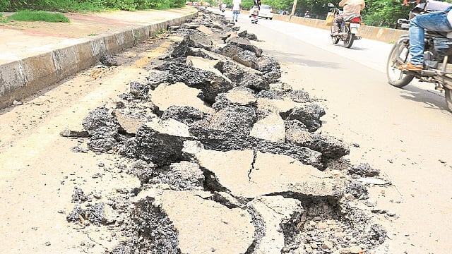 - दुभाजकामुळे रस्ता आणखी अरूंद