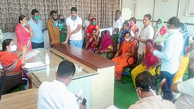 नगराध्यक्षा अलका स्वामी व मुख्याधिकारी संतोष खांडेकर यांच्याशी लाभार्थ्यांनी चर्चा केली. किती दिवस भाडे देऊन आम्ही बाहेर रहायचे, असा संतप्त सवाल त्यांनी या वेळी केला. जोपर्यंत ठोस निर्णय होत नाही, तोपर्यंत येथून हालणार नाही, अशी भूमिका या लाभार्थ्यांनी घेतली. प्रशासनाकडून नगर अभियंता संजय बागडे यांनी याबाबतचे स्पष्टीकरण दिले.