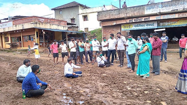 बसस्थानक ते विठ्ठल मंदिरापर्यंतच्या रस्त्यात चिखल झाला आहे. यामुळे रस्त्यावरून चालणे अडचणीचे झाले आहे. तसेच या रस्त्यात सांडपाणी येत असल्याने आरोग्याचा प्रश्नही गंभीर बनला आहे. त्यामुळे हा रस्ता तातडीने करावा, अशी मागणी वाघाचा चौक तरुण मंडळाचे संस्थापक संकेत सावंत, दिनेश कांबळे, हरीबा कांबळे, पांडुरंग पाईम यांनी आज थेट चिखलात ठाण मांडून आंदोलन केले.