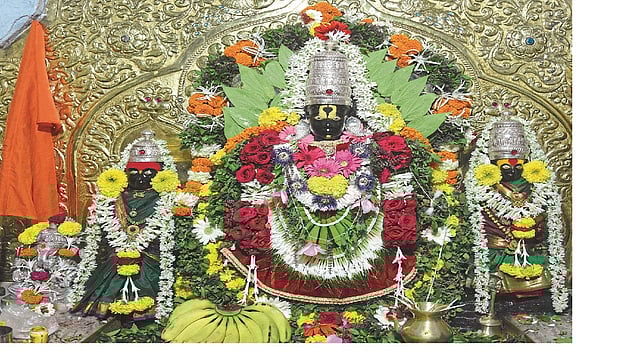 - विठ्ठल- रुक्मिणी, सत्यभामा मूर्तीसह गाभाऱ्यात फुलांची सजावट