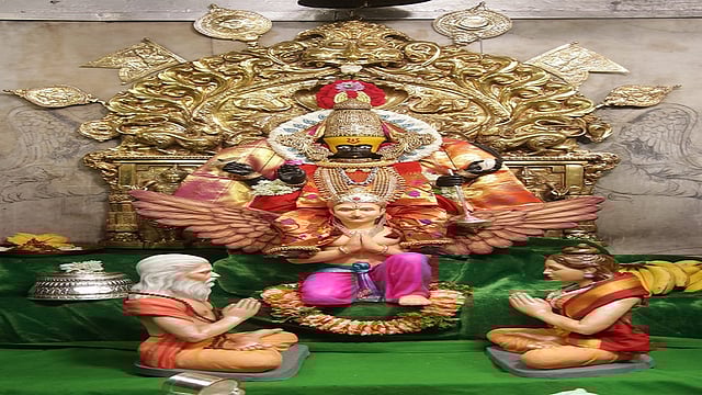 कोल्हापूर: नवरात्रोत्सवाच्या दुसऱ्या दिवशी आज करवीर निवासिनी श्री अंबाबाईची पराशरांना महाविष्णूस्वरूपात दर्शन या रूपात सालंकृत पूजा बांधण्यात आली. दरम्यान, येथील प्रसिध्द बांधकाम व्यावसायिक अजयसिंह देसाई यांनी बारा तोळ्याची सोन्याची ठुशी अर्पण केली. या ठुशीची किंमत सहा लाख वीस हजार रूपये इतकी आहे.