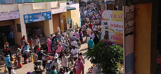 कोरोना विषाणूंचा प्रादुर्भाव रोखण्यासाठी जिल्हा प्रशासनाच्या वतीने विविध प्रयत्न केले जात आहेत. संपूर्ण देशात टाळेबंदी लागू आहे. प्रत्येक माध्यमांमधून जनजागृती केली जात आहे.माणसाने माणसापासून सुरक्षित अंतर ठेवून राहण्याशिवाय पर्याय नाही हे सर्वजण ठासून सांगत आहेत. त्यासाठी सर्वांनी घरात बसावे म्हणून संचारबंदी लागू केली. संचार बंदीच्या काळात सर्वसामान्य नागरिकांना जीवनावश्यक वस्तूची खरेदी करण्यासाठी सकाळी सात ते दहा अशी तीन तासाची सुट्टी दिली आहे ; मात्र या काळातच सर्व नियम धाब्यावर बसवून नागरिक एकत्र येत आहेत. चौकात विक्रेतेच दाटीवाटीने बसतात, त्यामुळे खरेदी करताना ग्राहकांचीही गर्दी होते. त्यामुळे सोशल डिस्टन्सचा पार बोजवारा उडतो आहे.