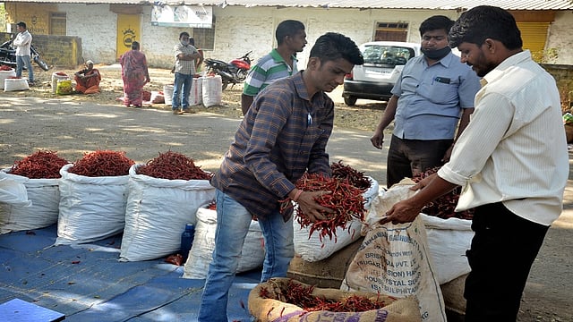 ग्रामीण भागासह लगतच्या सीमाभागातील शेतकरी मिरची विक्रीसाठी येथील बाजार समितीत आणत आहेत. यंदा झालेल्या विक्रमी परतीच्या पाऊसामुळे मिरचीचे उत्पादन सरासरी पन्नास टक्के कमी आहे. त्यामुळेच जवारी मिरचीला उचांकी भाव मिळत आहे. जवारी मिरची दर्जानुसार 400 ते 1000 रूपये किलो आहे. ब्याडगी मिरची अडीचशे ते चारशे रुपये किलो आहे.