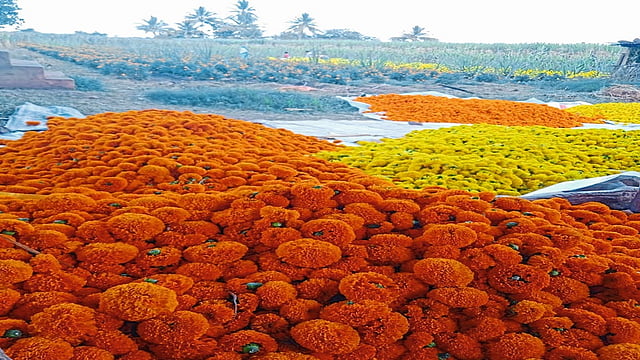 दिवाळीच्या आधीचा काळ झेंडू फुल उत्पादकांसाठी सुगीचा होता. सध्या बाजार समितीत झेंडू फुलाचे सौदे उत्पादकांसाठी निराशाजनक आहेत. 200 ते 300 च्या दरम्यान प्रतिकिलो सौद्यात निघणारे भाव 40 रूपयांवर आले आहेत. अचानक वाढलेली आवक याला मारक ठरली आहे.
