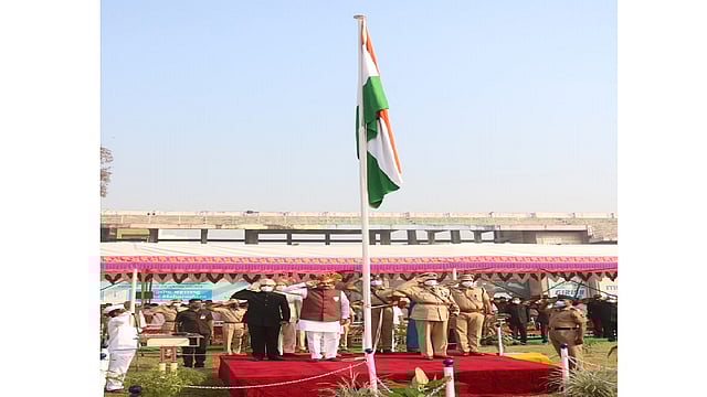 भारतीय प्रजासत्ताक दिनाच्या 71 व्या वर्धापन दिनानिमित्त आज पालकमंत्री सतेज पाटील यांच्या हस्ते शाहू मैदानावर सकाळी सव्वानऊ वाजता ध्वजारोहन करण्यात आले. यावेळी त्यांनी भाषण केले. ध्वजारोहन, ध्वजवंदना आणि राष्ट्रगीत अशा सोहळ्यात शहिद जवानांचे कुटुंबिय, पोलिस अधिकारी, पुरस्कार प्राप्त मान्यवरांसह मोजकेच नागरिक उपस्थित होते.