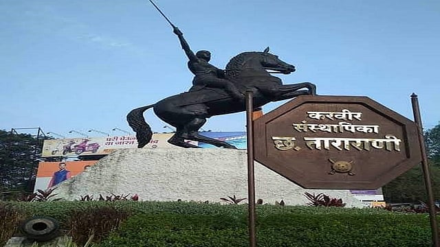 कोल्हापूर : महापालिकेच्या पहिल्या लोकनियुक्त सभागृहाने बोधचिन्हाबरोबरच आणखी एक महत्त्वाचा निर्णय घेतला आणि तो म्हणजे शहरात प्रवेश करताना करवीर संस्थापिका रणरागिणी ताराराणी यांचा भव्य पुतळा उभारण्याचा. प्रसिद्ध चित्रकार व शिल्पकार रवींद्र मेस्त्री यांनी ही अद्वितीय कलाकृती साकारली. दोन पायांवर तोल सांभाळणाऱ्या घोड्यासह २१ फूट उंचीच्या या कलाकृतीच्या निर्मितीमागील कथाही तितकीच रंजक आहे.