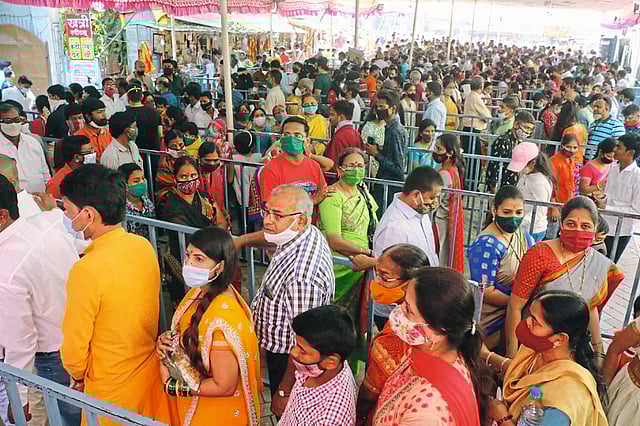 कोल्हापूर ः प्रजासत्ताक दिनाच्या पार्श्वभूमीवर आलेल्या रविवारी शहर पर्यटकांच्या गर्दीने फुलून गेले. अंबाबाई मंदिरात आज सकाळी दर्शनासाठी असलेली भाविकांची रांग भवानी मंडपापर्यंत गेली. महाद्वार रोज, बिंदू चौक, मध्यवर्ती बस स्थानक परिसर या ठिकाणी पर्यटक, भाविकांची वर्दळ होती. कोरोनाच्या लॉकडाऊन नंतर खंडीत झालेले कोल्हापूरचे पर्यटन रुळावर आल्याचे यातून दिसले.