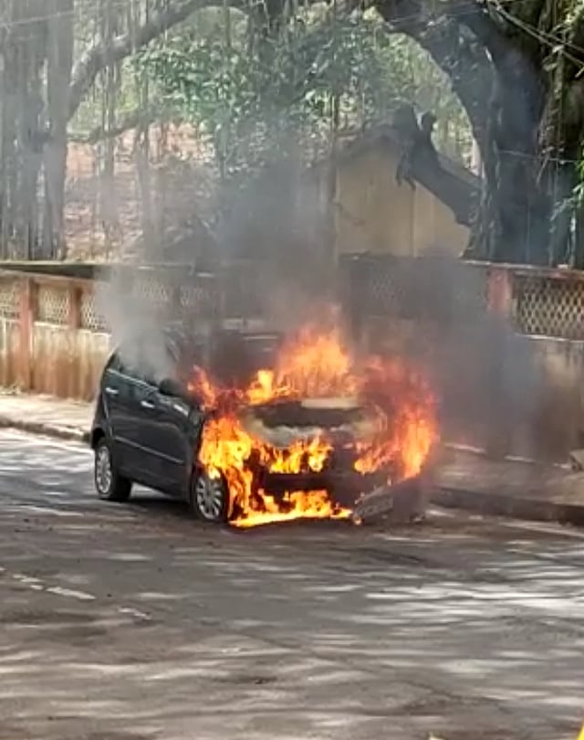 आज सकाळच्या सुमारास शौर्य चौकाकडून पाईपलाईनकडे इंडिका व्हिस्टा कार जात होती. मिलेटरी महादेव मंदिरनजिक कार येताच चालत्या कारने अचानक पेट घेतला. इंजिनधून आग आणि धुरीचे लोळ बाहेर पडताच चालकाने प्रसंगावधान राखत कार रोखली. कारमधील प्रवास तातडीने बाहेर पडले. मात्र, यामध्ये चालक किरकोळ जखमी झाला. चालत्या कारने पेट घेतल्याचे पाहून रस्त्यावरुन ये जा करणाऱ्या इतर वाहन चालकांची धावपळ उडाली. काहीनी केवळ फोटो आणि व्हिडिओ चित्रिकरण करण्यात धन्यता मानली. आगीची माहिती मिळताच अग्निशामक दलाच्या जवानानी घटनास्थळी धाव घेउन आग आटोक्यात आनली. त्यामुळे सर्वांनीच सुटकेचा निश्वास सोडला. कॅम्प पोलिसांनी घटानास्थळी भेट देउन पंचनामा केला. पोलीस निरीक्षक डी. संतोषकुमार अधिक तपास करीत आहेत.