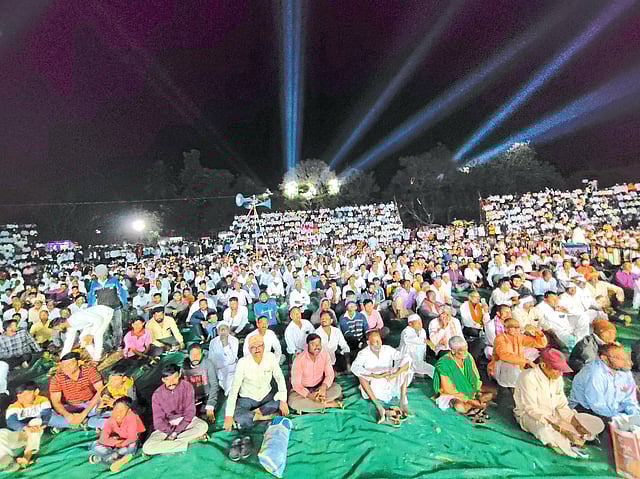वारणानगर : येथे झालेल्या आंतरराष्ट्रीय कुस्ती मैदानात कुस्ती शौकिनांची झालेली गर्दी. या वेळी लेसर शोने डोळ्यांचे पारणे फेडले.