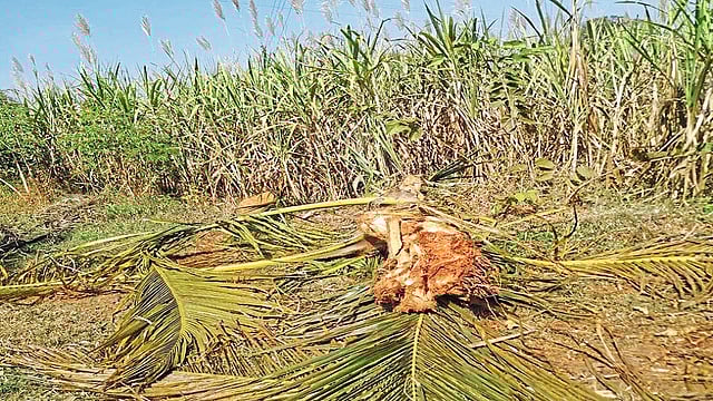 धनगरमोळा परिसरात गवत कापणी करणाऱ्या शेतकऱ्यांना त्याचे दर्शन झाले. चाळोबा परिसरात असलेल्या टस्कराने देवर्डे व माद्याळ परिसरात धुमाकूळ घातला आहे. त्याने माद्याळ येथील सुरेश शेळके व हनमंत शेळके यांच्या ऊस पिकाचे मोठे नुकसान केले आहे. त्यांने त्यांची दोन नारळाची झाडे जमिनदोस्त केली. त्याच्या वावराने शेतकरी हवालदिल झाले आहेत.