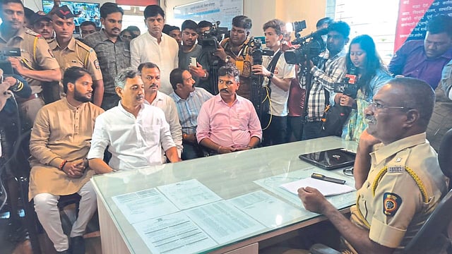 संभाजीराजे ठाण्यात येत असल्याचे समजताच परिसरात पोलिस बंदोबस्त तैनात करण्यात आला होता.