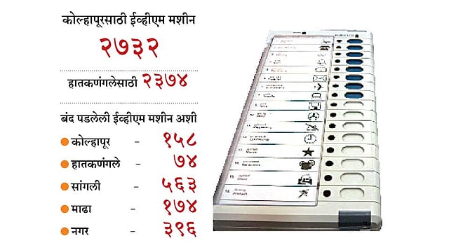 लोकसभेच्या कोल्हापूर मतदारसंघासाठी २७३२ आणि हातकणंगलेसाठी २३७४ मतदान (ईव्हीएम) मशीन होती. कोल्हापूर मतदारसंघात १५८ तर हातकणंगले मतदारसंघात ७४ हून अधिक मशीन बंद पडल्याने मतदान कक्ष अधिकारी, कर्मचाऱ्यांची तारांबळ उडाली.