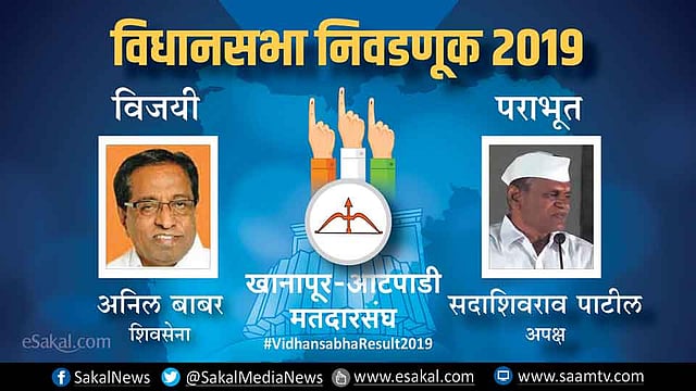 विटा - खानापूर विधानसभा मतदारसंघात शिवसेनेचे उमेदवार अनिल बाबर यांनी 1 लाख 16 हजार 974 मते मिळवत भगवा भडकवला. 26 हजार 291 मताधिक्य घेतले. तर विरोधी अपक्ष उमेदवार सदाशिवराव पाटील यांना 90 हजार 683 मते मिळाली. एकूण 2 हजार 928 नोटाचे मतदान झाले.