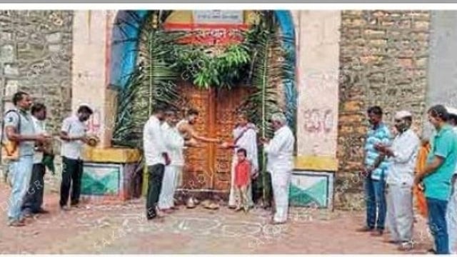 सकाळी एपीएमसी सदस्य रवींद्र पुजारी यांनी महाव्दाराच्या उंबरठ्याची व दरवाजाची पूजा केली. यावेळी श्रीकांत पुजारी, अप्पासाहेब पुजारी यांच्यासह वाघे, मुरळ्या व भाविक उपस्थित होते. पूजा झाल्यावर महाव्दार उघडले. कोरोना संसर्ग सुरु झाल्याने हे मंदिर १८ एप्रिलपासून ७८ दिवस बंद होते.