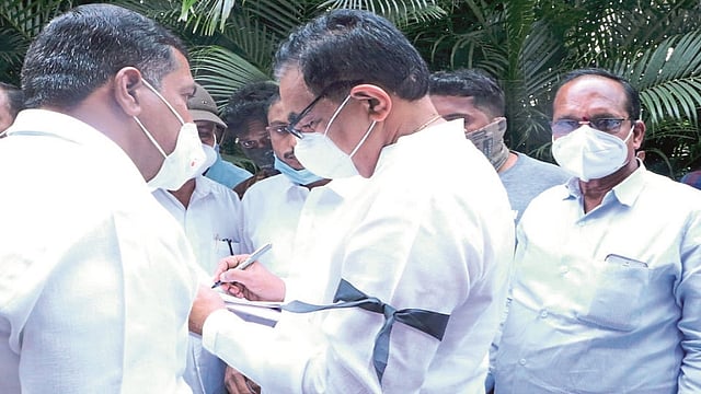 सांगली : महाराष्ट्र कर्नाटक सीमाप्रश्नी कर्नाटक सरकारच्या निषेधार्थ एक नोव्हेंबर हा दिवस काळा दिवस म्हणून पाळण्यात येतो. आज कर्नाटकातील मराठी भाषिक सीमावासियांना पाठिंब्यासाठी आणि कर्नाटक सरकारच्या निषेधार्थ राष्ट्रवादीचे प्रदेशाध्यक्ष तसेच जलसंपदा मंत्री जयंत पाटील यांनी काळी फीत बांधून काम केले.