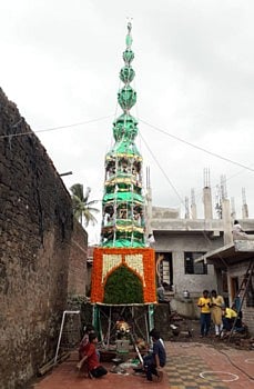 कोरोनामुळे दोनशे वर्षात पहिल्यांदाच मोहरम सणानिमित्त होणारा गगनचुंबी ताबुतांच्या गळाभेटीचा सोहळा व मिरवणुक यावर्षी रद्द करण्यात आली.त्यामुळे यावेळी बाहेरुन भाविक आले नाहीत.