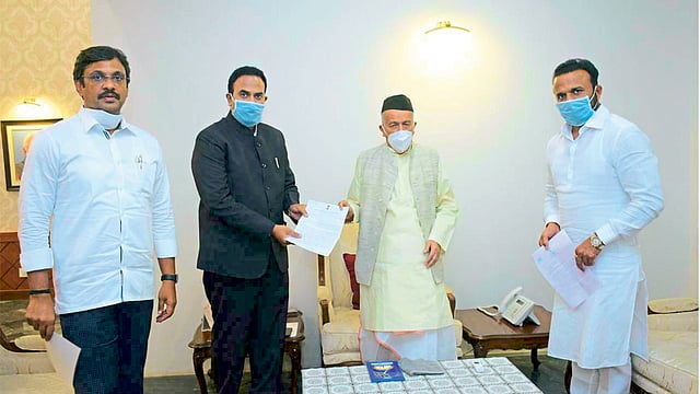फलटण शहर (जि. सातारा) ः देशात कोरोनाबाधितांपैकी 40 टक्के बाधित रुग्ण हे महाराष्ट्रातील आहेत व त्यात दिवसेंदिवस वाढ होताना दिसत आहे. मात्र, महाराष्ट्रातील महाविकास आघाडीचे सरकार बेफिकीरपणे ही परिस्थिती हाताळत आहे. सरकार कोणतेही ठोस असे निर्णय घेत नाही, अशी टीका खासदार रणजितसिंह नाईक- निंबाळकर यांनी राजभवन येथे राज्यपाल भगतसिंह कोश्यारी यांची भेट घेऊन सविस्तर चर्चा करताना केली. या वेळी त्यांच्यासमवेत आमदार जयकुमार गोरे व सुभाष कुल हेही उपस्थित होते.
