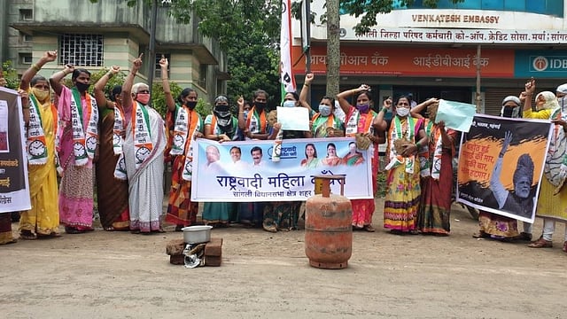 सांगली : राष्ट्रवादी काँग्रेस सांगली (Sangli) महिला आघाडीतर्फे केंद्र सरकारने घरगुती गॅस सिलेंडरचे दर सहा महिन्यात दाम दीडपट केले. या दरवाढीच्या निषेधार्थ राष्ट्रवादी काँग्रेस पक्ष कार्यालयासमोर चूल पेटवून महिलांनी निदर्शने केली. केंद्र सरकारच्या विरोधात घोषणांनी परिसर दणाणून सोडला.