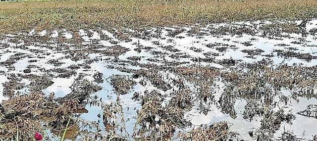 सद्यःस्थितीत १२० एकर सोयाबीनच्या उभ्या पिकाच्या शेंगाना कोंब फुटले आहेत. सोयाबीनच्या पेरणीसाठी शेतकऱ्यांनी बियाणे, खते, पेरणी, खुरपणीसाठी जास्त खर्च केला होता. यातून चांगले उत्पन्न अपेक्षित होते. परंतु पावसामुळे शेतात पाणी साचून सोयाबीन जागेवरच काळे पडत आहे. हिरव्या शेंगांमधून कोंब बाहेर येत असल्याने उत्पन्नात घट येऊन योग्य दरही मिळणे कठीण बनले आहे.