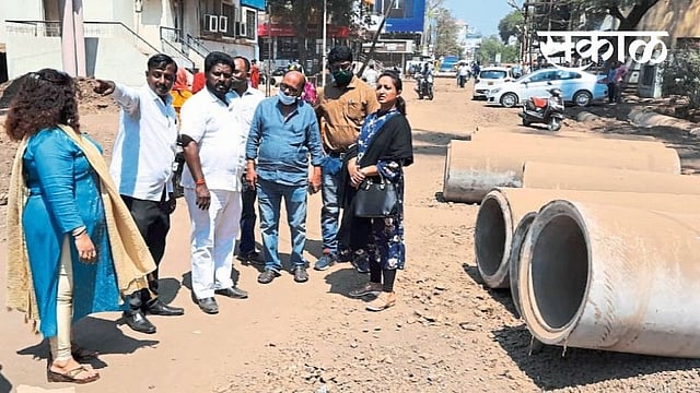 याबद्दल "सकाळ'ने वृत्त प्रसिध्द केल्यावर आज भाजपचे गटनेते विनायक सिंहासने, नगरसेविका स्वाती शिंदे, लक्ष्मण नवलाई तसेच सुजित राऊत आदींनी प्रत्यक्ष जागेवर जाऊन कामाची पाहणी केली. त्यांनी शहर अभियंता संजय देसाई, शाखा अभियंता यांना जागेवर बोलवून काम का रेंगाळले याची माहिती घेतली आणि काम वेळेत पुर्ण करण्याबद्दल सूचना केल्या. वीज वितरणच्या अंडरग्राऊंड केबल व मुरूम उपलब्ध होत नसल्याने काम थांबल्याचे अधिकाऱ्यांनी सांगितले.