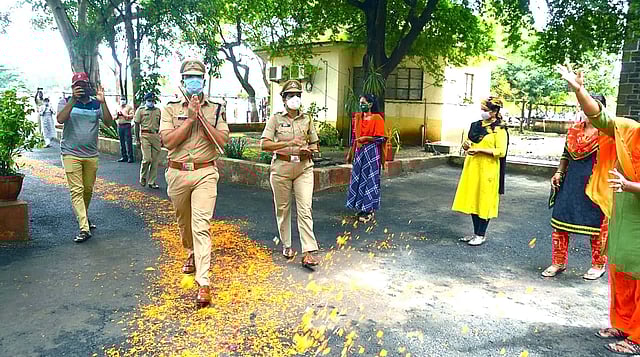 अधीक्षक शर्मा यांनी काही दिवसापूर्वी कोरोनाची लागण झाल्याचे स्पष्ट झाले. त्यांच्या निवासस्थानीच त्यांच्यावर उपचार सुरू होते. याकाळात अप्पर अधीक्षक मनिषा दुबुले यांनी कार्यभार संभाळला. श्री. शर्मा कोरोनामुक्त झाल्यानंतर त्यांनी आज मुख्यालयात पुन्हा सुत्रे स्वीकारली. यावेळी त्यांचे जल्लोषी स्वागत करण्यात आले. पुष्पवृष्टी करून "कोरोना योद्धा'चा सन्मान करण्यात आला. यावेळी पोलिस बॅंडनेही सलामी दिली.