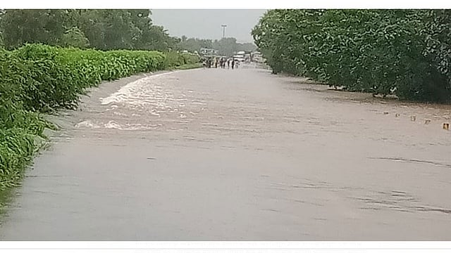 गेल्या दोन दिवसांपासून विविध धरणातून मोठ्या प्रमाणात पाण्याचा विसर्ग केला जात आहे. त्यामुळे निपाणीसह परिसरातील वेदगंगा आणि दूध गंगा नद्यांची पाणीपातळी वाढली असून नदीचे पाणी शेतीवाडी आणि रस्त्यावर मोठ्या प्रमाणात पसरत आहे. सोमवारी रात्री दहा वाजल्यापासून मोठ्या प्रमाणात पाणी येत असल्याने कोल्हापूर निपाणी महामार्गावरील यमगरणी जवळ रस्त्यावर मांगुर फाट्यापर्यंत पाणी पसरले आहे. त्यामुळे वाहनधारकांना रस्ता दिसत नाही. अशावेळी दुर्घटना टाळण्यासाठी मंडल पोलीस निरीक्षक संतोष सत्यनायक यांच्या नेतृत्वाखाली उपनिरीक्षक एच. डी. मुल्ला, ए. के. नदाफ, बी. एस. तळवार यांच्या नेतृत्वाखाली पोलिसांनी मांगुर फाटा आणि यमगरणी बस स्थानकाजवळ बॅरिकेट लावून रस्ते वाहतुकीसाठी बंद करण्यात आले आहेत. याशिवाय उंच भरारी पथकही तैनात करण्यात आले असून निपाणी व सौंदलगा परिसरात पोलीस व्हॅन आणि अंबुलन्स सेवा देण्यात आली आहे. रस्त्यावर थांबलेल्या सर्वच वाहनधारकांना पाण्यातून न जाण्याच्या सूचना वारंवार दिल्या जात आहेत.
