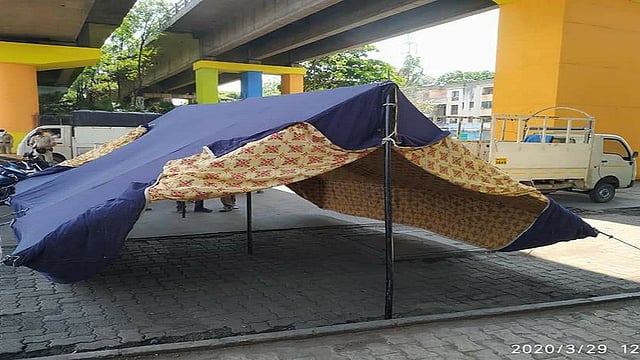 पुणे : 'कोरोना'च्या संचारबंदीमुळे २४ तास पोलिसांना बंदोबस्त तैनात करावा लागत असल्याने ऊन, वारा, पावसात आडोसा मिळावा यासाठी राष्ट्रीय स्वयंसेवक संघाकडून शहरात विविध ठिकाणी राहुट्या उभारल्या जात आहेत.
