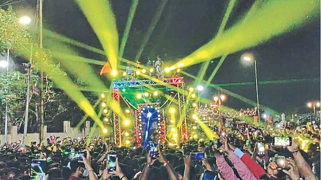गेल्या १५ ते २० वर्षांत उत्सवातील मिरवणुकांचे स्वरूप बदलत चालले आहे. पारंपरिक वाद्यांच्या गजरात निघणाऱ्या मिरवणुकांबरोबर अलिकडच्या काळात ध्वनिक्षेपकाच्या भिंती उभ्या करून आवाजाचा दणदणाट केला जातोय. त्याच्या जोडीने डोळे दिपवणाऱ्या रंगीबेरंगी प्रकाशझोताचा मारा केला जातोय. तसेच सध्या डोळे दिपवणारा झगमगाट आणण्यासाठी लेसर किरणांचा मारा सभोवती केला जातोय. लेसरचा वापर वैद्यकीय क्षेत्रात विविध उपचारांसाठी केला जातो. परंतु अलिकडे त्याचा वापर चार भिंतींच्या बाहेर आणला आहे.