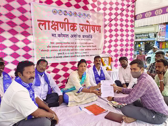 कोमल बनसोडे या विकास आघाडीच्या नगरसेविका आहेत. शहरातील प्रभाग क्रमांक ३, ५ व १४ मध्ये सुमारे साडे आठ कोटी रुपयांची विकासकामे झाली आहेत. या सर्व कामांच्या ठिकाणी लोकशाहीर अण्णाभाऊ साठे नागरी दलित वस्ती सुधार योजना असे नामफलक लावण्याची वारंवार मागणी करूनही नगरपालिकेने त्याकडे दुर्लक्ष केले आहे. त्यामुळे कोमल बनसोडे यांनी हे उपोषण केले. राष्ट्रवादी काँग्रेसनंतर विकास आघाडीचे अध्यक्ष विक्रम पाटील यांच्यासह शिवसेनेच्या नगरसेवकांनीही भेटी देऊन पाठिंबा दिला.