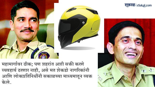 कोल्हापूर परिक्षेत्रामध्ये शनिवारपासून (ता. 15) हेल्मेट सक्ती करण्याचा निर्णय झाल्यानंतर सातारा जिल्ह्यातील सर्वसामान्य नागरिक चांगलाच हडबडला होता. विविध प्रश्‍न आ वासून उभे असताना ही नवी 'ब्याद' कशाला असा 'मध्यमवर्गीय' प्रश्‍न प्रत्येकाच्या मनात निर्माण झाला होता. सर्वसामान्यांच्या संतप्त प्रतिक्रिया उमटू लागल्या होत्या. शहरे व वाहनांना वेग नसतो अशा ग्रामीण भागात हेल्मेट सक्ती अव्यवहार्य असल्याचे सर्वांचेच मत होते. लोकांच्या भावना विचारात घेऊन 'सकाळ'नेही शहर व ग्रामीण भागात हेल्मेट सक्ती केली जाऊ नये, अशीच भूमिका मांडली. लोकांच्या प्रतिक्रियांना सातत्याने स्थान देत हा विषय लावून धरला. जिल्ह्यातील लोकप्रतिनिधींनीही त्याला साथ देत राज्य व महामार्गाव्यतिरिक्त हेल्मेट सक्तीला विरोध दर्शविला. अनेकांनी या निर्णयाविरोधात रस्त्यावर उतरण्याचाही निर्णय घेतला.