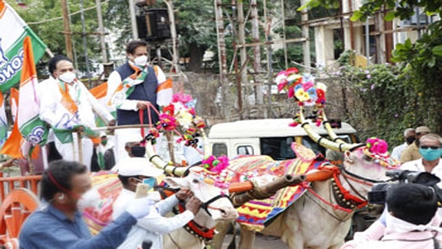 निमित्त होते कॉंग्रेसच्या वतीने पेट्रोल, डिझेलच्या दरवाढीविरोधात माजी मुख्यमंत्री, आमदार पृथ्वीराज चव्हाण यांनी दत्त चौकात छत्रपती शिवाजी महाराज यांच्या पुतळ्यास अभिवादन करून तेथून बैलगाडीतून येथील प्रशासकीय इमारतीसमोर जाऊन केलेल्या आंदोलनाचे.