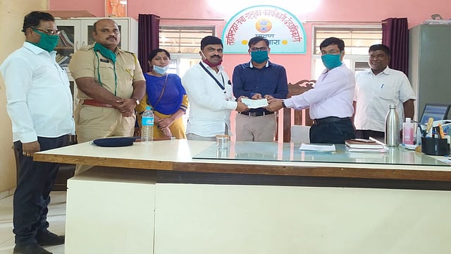 मल्हारपेठ (जि.सातारा) : कोरोना व्हायरसच्या पार्श्वभूमीवर राज्य शासनाला मुकाबला करण्यासाठी तळमावलेच्या शिवसमर्थ मल्टिस्टेट को ओपरेटिव्ह संस्थेकडुन मुख्यमंत्री सहायत्तानिधिसाठी एक लाख रूपयाच्या मदतीचा धनादेश पाटणचे प्रांताधिकारी श्रिरंग तांबे आणी तहसीलदार समिर यादव याना संस्थेचे संस्थापक जनार्दन बोत्रे यांनी सुपूर्द केला.