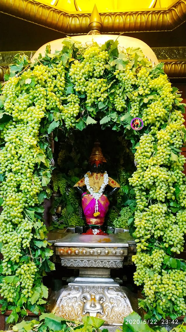 पंढरपूर तालुक्यातील कासेगाव येथील कृष्णात लक्ष्मण देशमुख यांनी मंदिर समितीला या आकर्षक सजावटीसाठी द्राक्षे दिली असून मंदिर समितीच्या कर्मचाऱ्यांनी ही सजावट केली आहे.